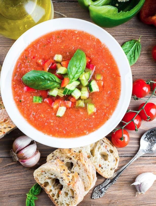 - Sirva el gazpacho en cuencos o vasos.