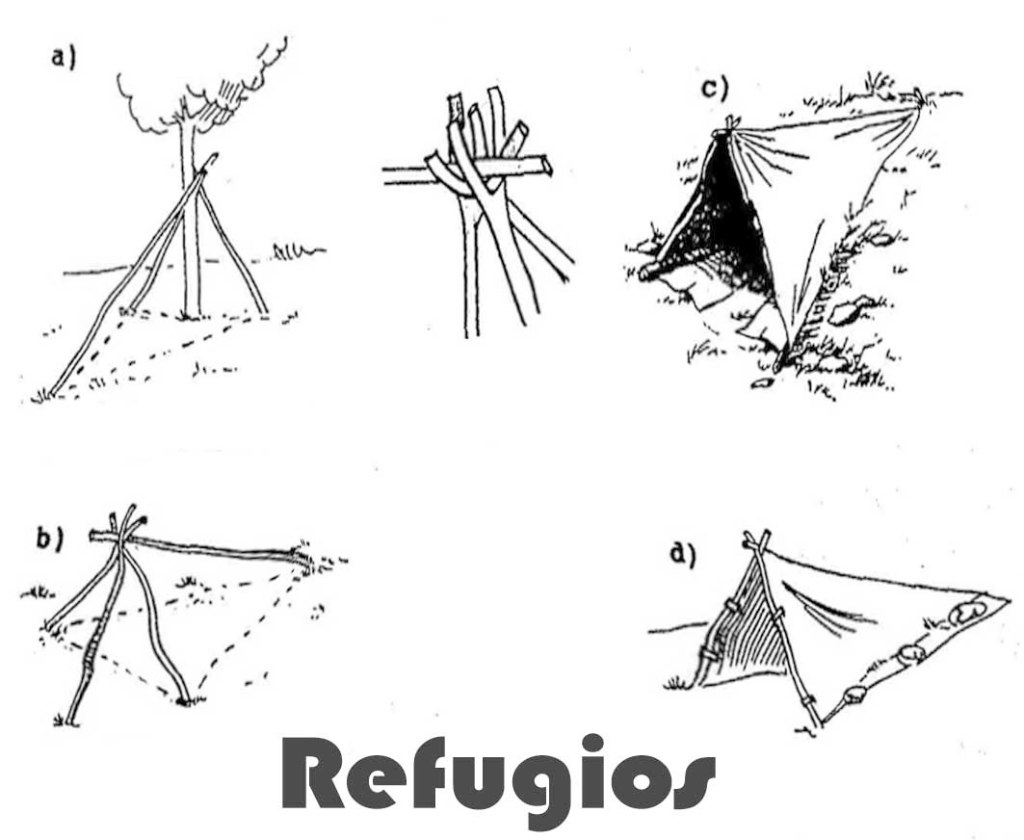 Si los materiales son limitados, un refugio básico puede construirse utilizando un poncho o plástico entre dos palos. Este refugio es fácil de armar y proporciona protección contra las inclemencias del tiempo. Este tipo de refugio es ideal para situaciones de emergencia o para pasar la noche de manera improvisada.