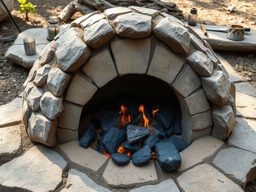 Un horno de piedra improvisado permite cocinar alimentos de manera eficiente en la naturaleza, aprovechando la capacidad de las piedras para almacenar y distribuir calor uniformemente. Ideal para pan, carnes ahumadas o cocciones lentas.