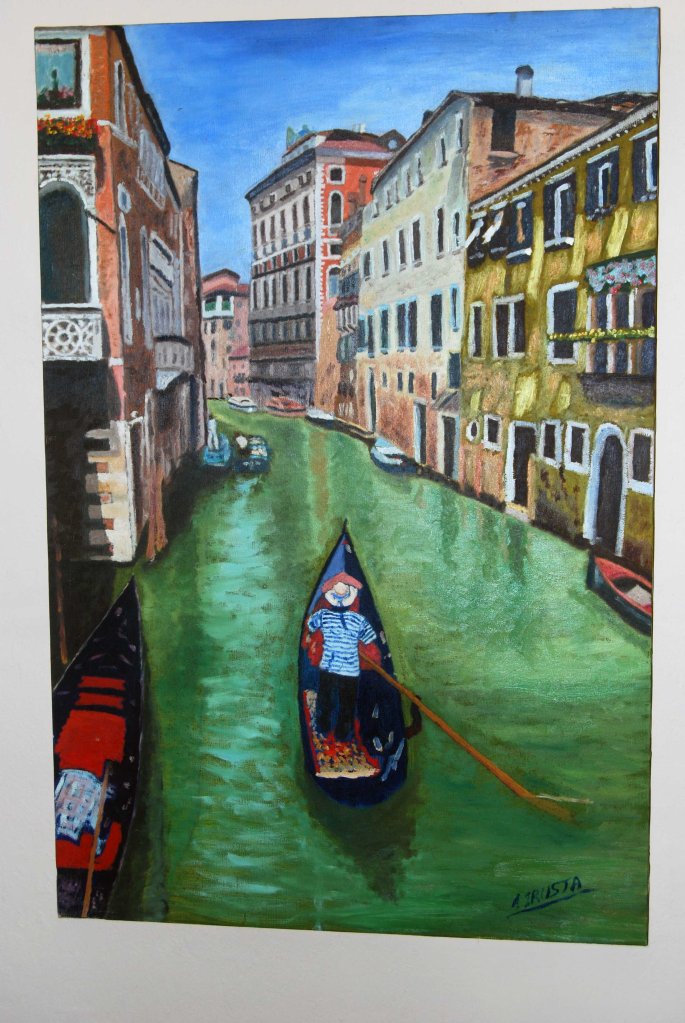 En esta encantadora obra, Irusta nos transporta directamente a los icónicos canales de Venecia. Pintado al óleo sobre lienzo en el año 2007, este cuadro de 81 x 54 cm captura la esencia de la ciudad flotante con una paleta vibrante y una perspectiva evocadora.