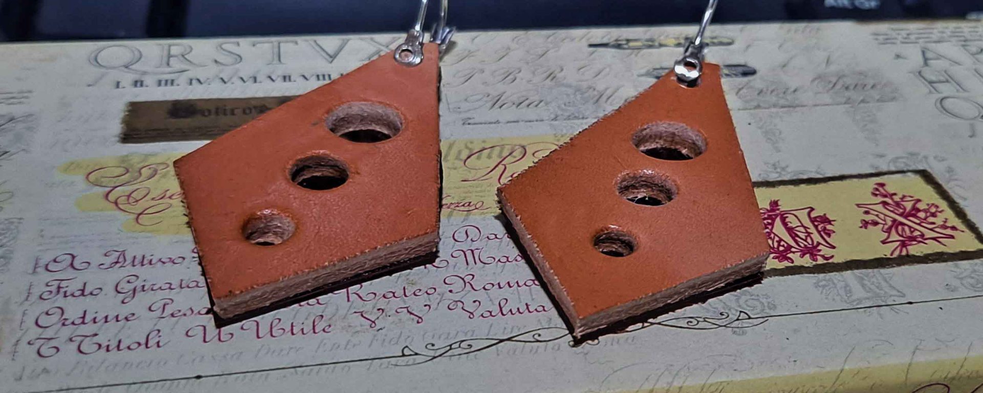 Ensamblaje de capas de cuero en colores contrastados.